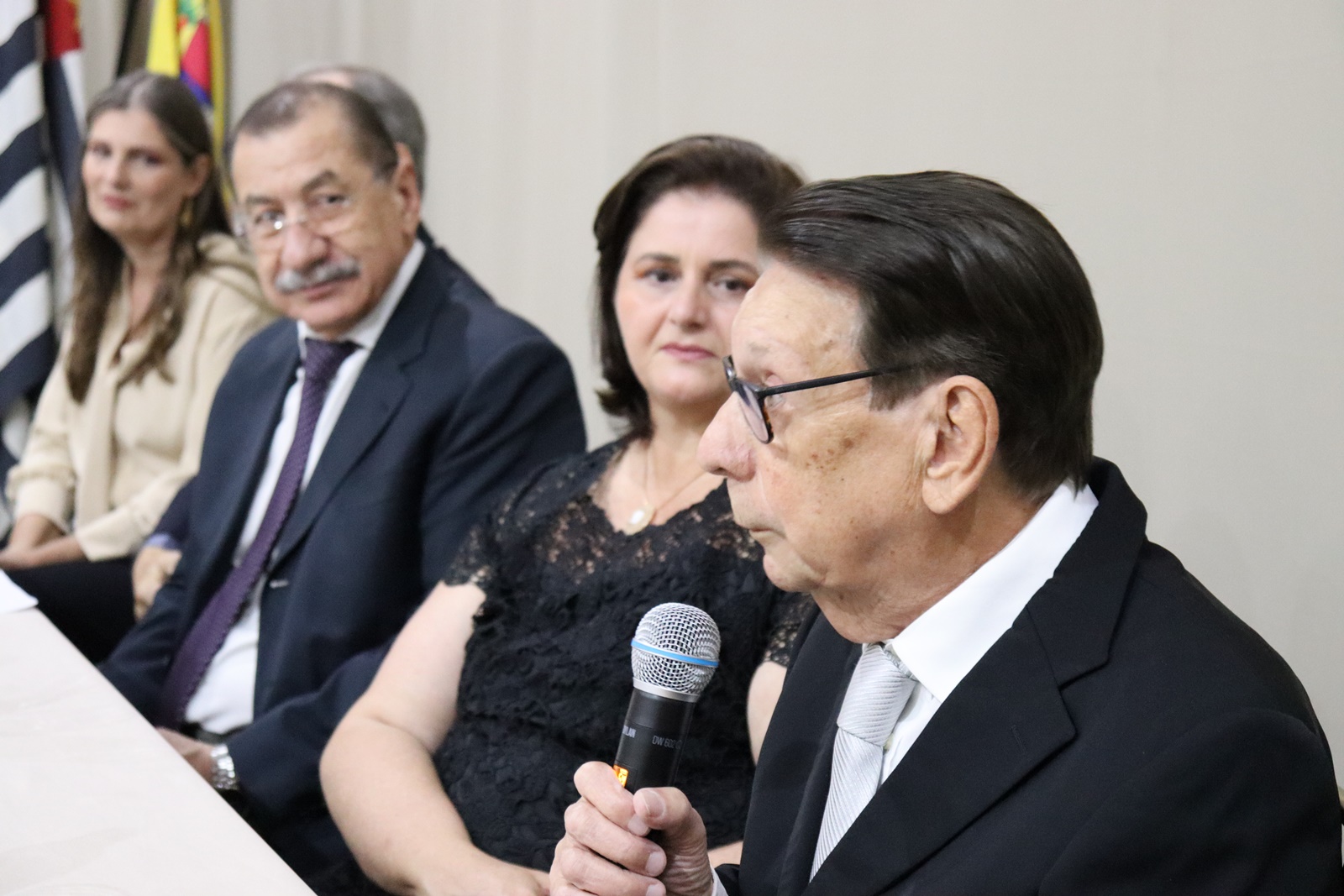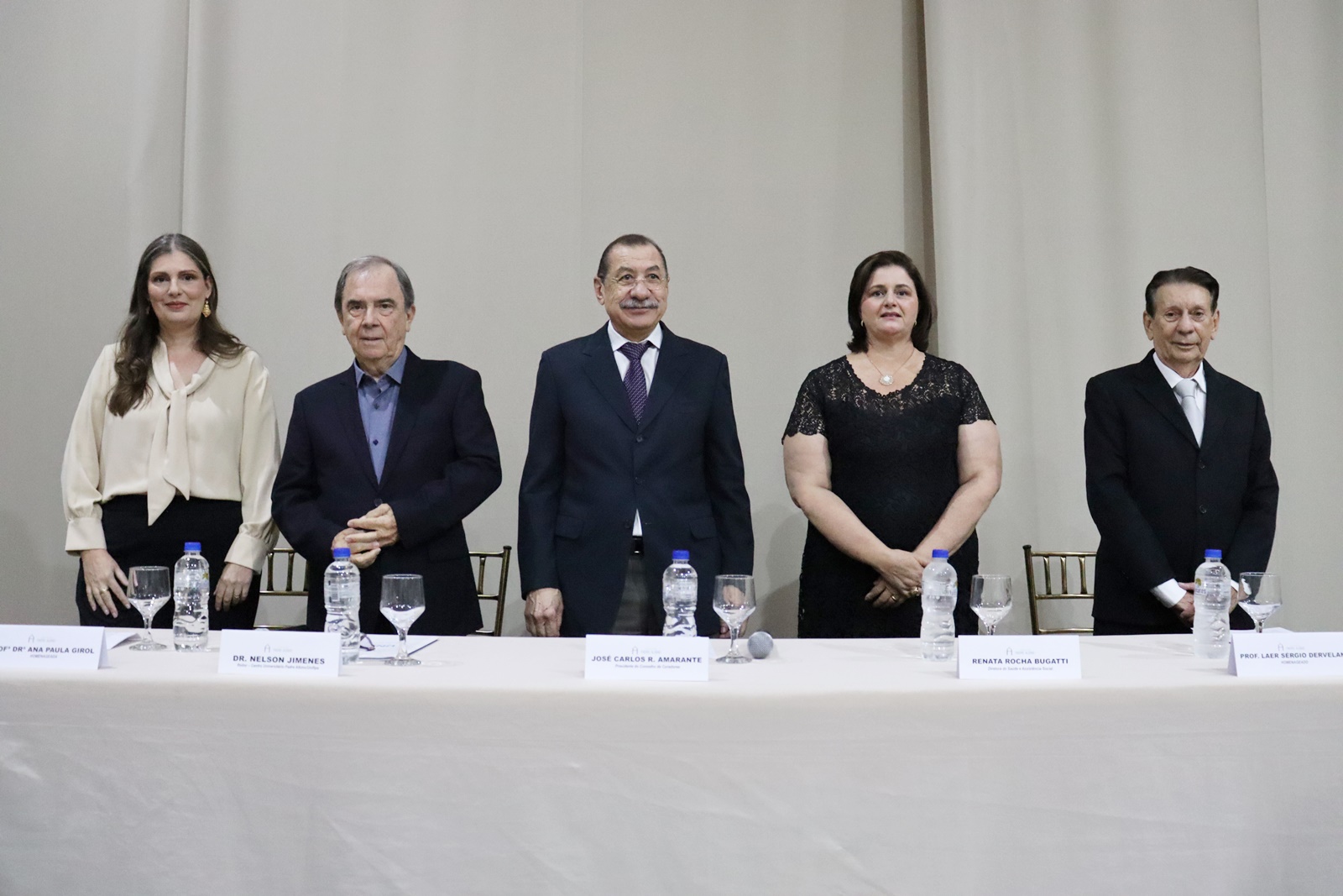 A mesa solene foi composta por José Carlos Rodrigues Amarante, presidente do Conselho de Curadores da FPA; Dr. Nelson Jimenes, reitor da Unifipa; e Renata Rocha Bugatti, diretora de Saúde e Assistência Social da FPA, representando o diretor-presidente Reginaldo Donizeti Lopes.