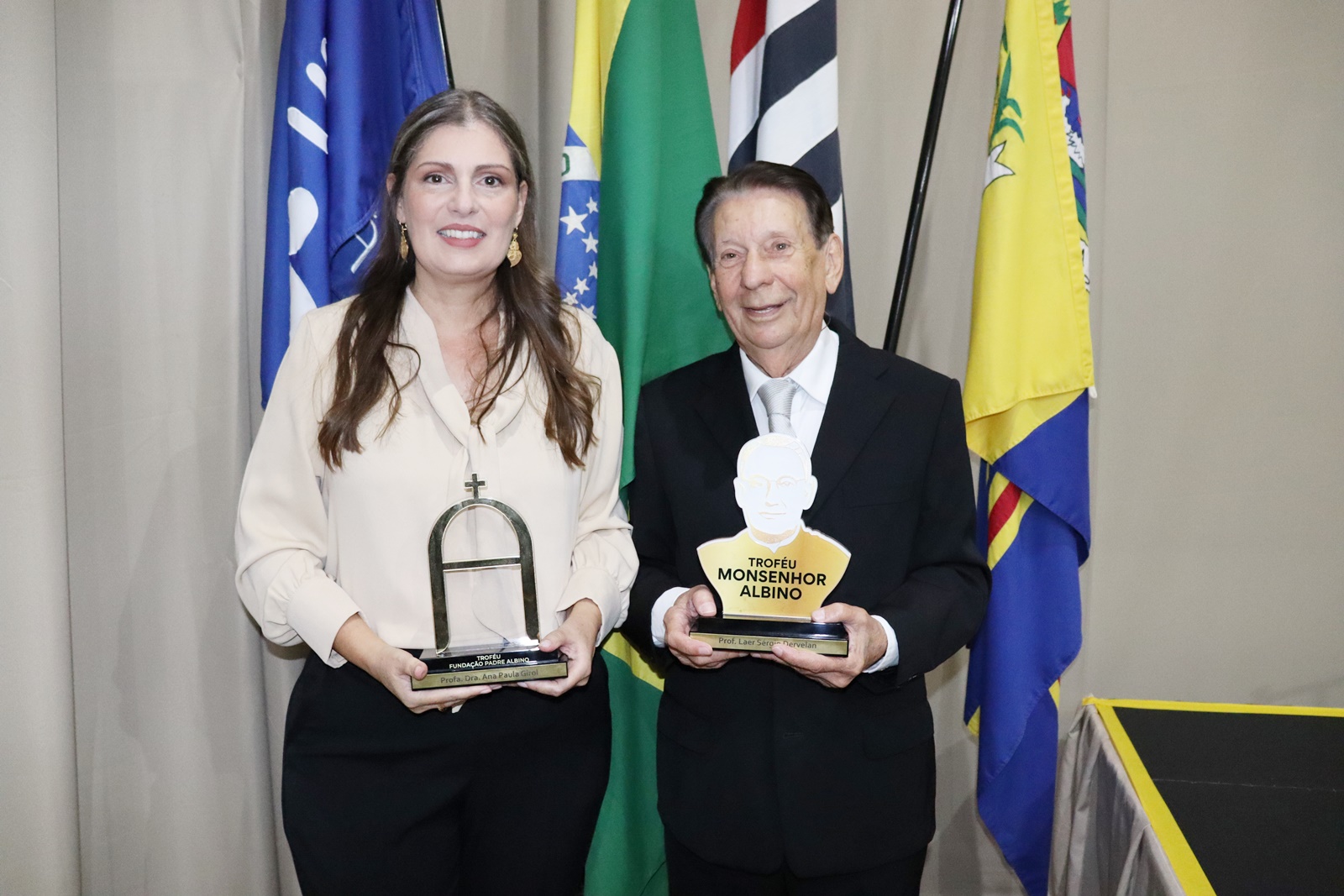 Na última sexta-feira, 19 de setembro, foi realizada a cerimônia de outorga dos troféus Fundação Padre Albino e Monsenhor Albino, evento que integrou a programação da 34ª Semana Monsenhor Albino. A cerimônia foi realizada no campus sede da Unifipa, marcada por emoção e reconhecimento, tendo como grandes homenageados a Profa. Dra. Ana Paula Girol e o conselheiro Prof. Laer Sérgio Dervelan.